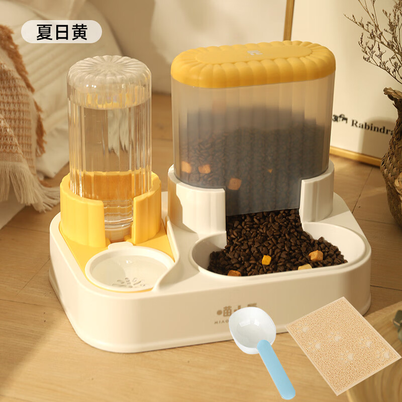 猫碗食盆双碗自动饮水喂食器一体狗狗猫咪喝水碗猫粮狗碗宠物用品 夏日黄【滤芯】 餐垫 勺子 猫狗通用加购收藏优先发货