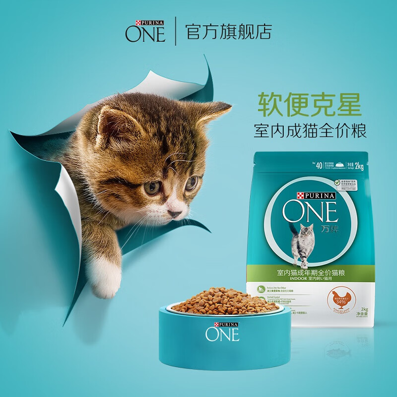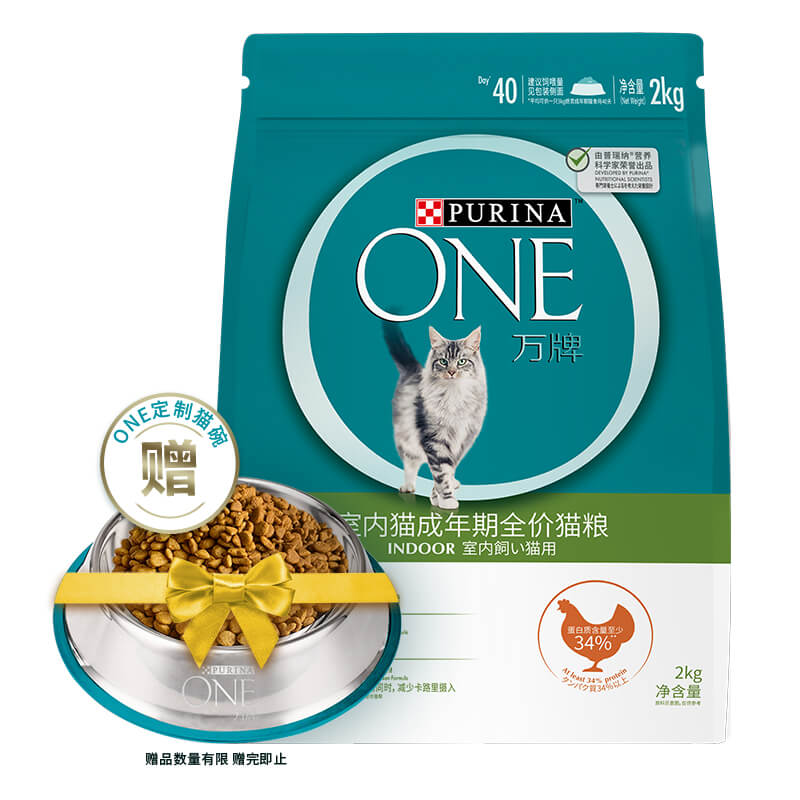 ONE(万牌)猫粮成猫2kg 室内成猫 ONE猫粮便便健康体重控制营养全价猫粮