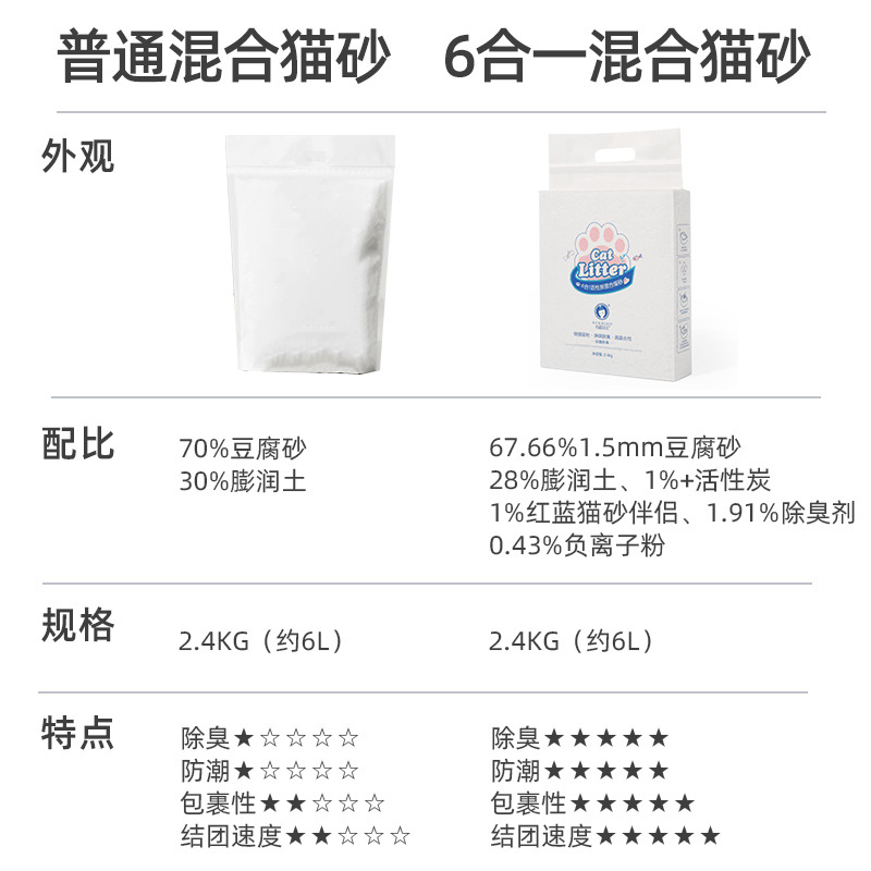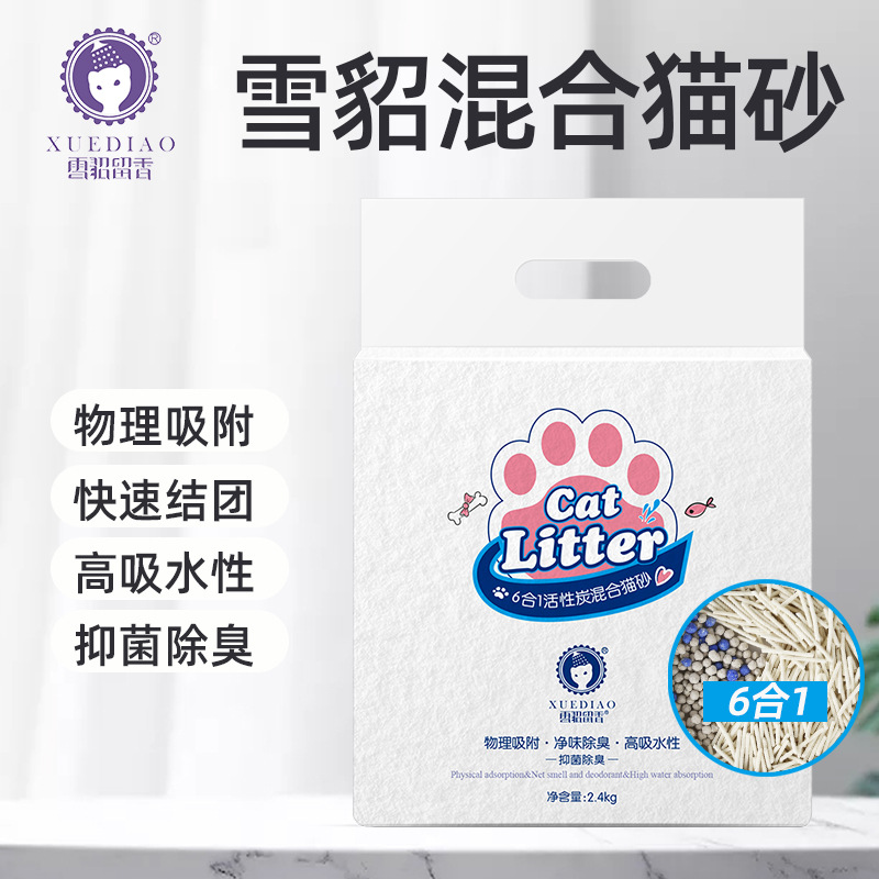 雪.貂.留.香六合一混合猫砂活性炭低尘强吸水混合豆腐砂宠物生活用品 6合一猫砂4包装 2.4kg