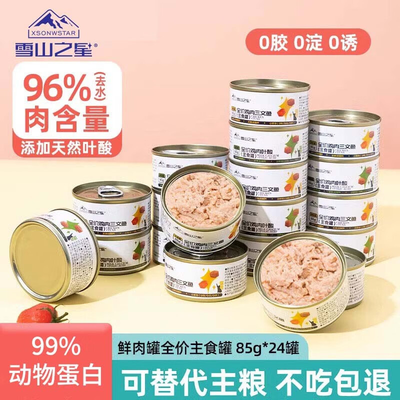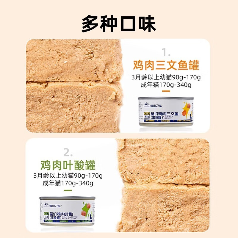 雪山之星猫罐头主食罐鸡肉三文鱼混合味宠物猫咪营养增肥补水湿粮85g/24罐 【鸡肉三文鱼味】*24罐