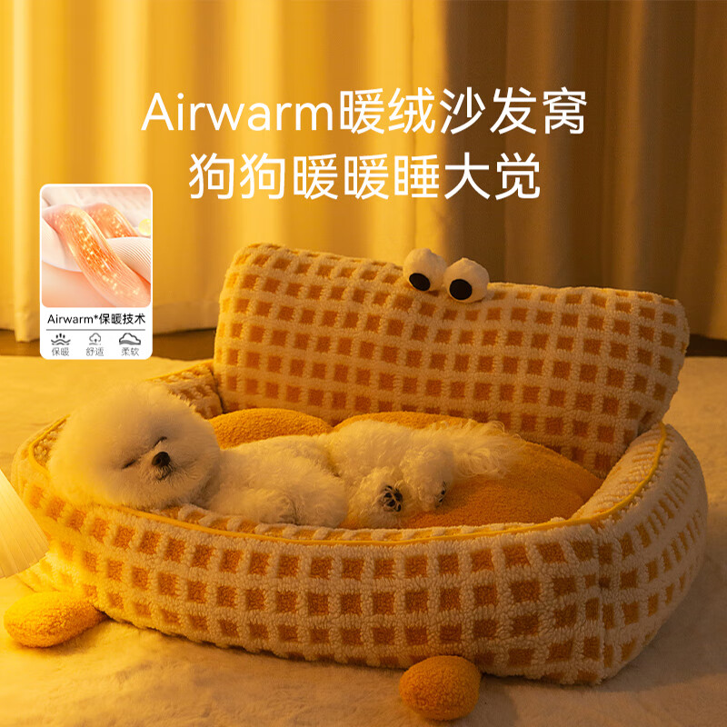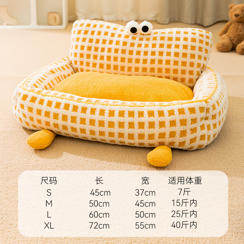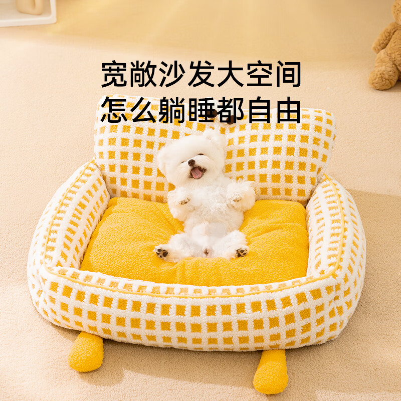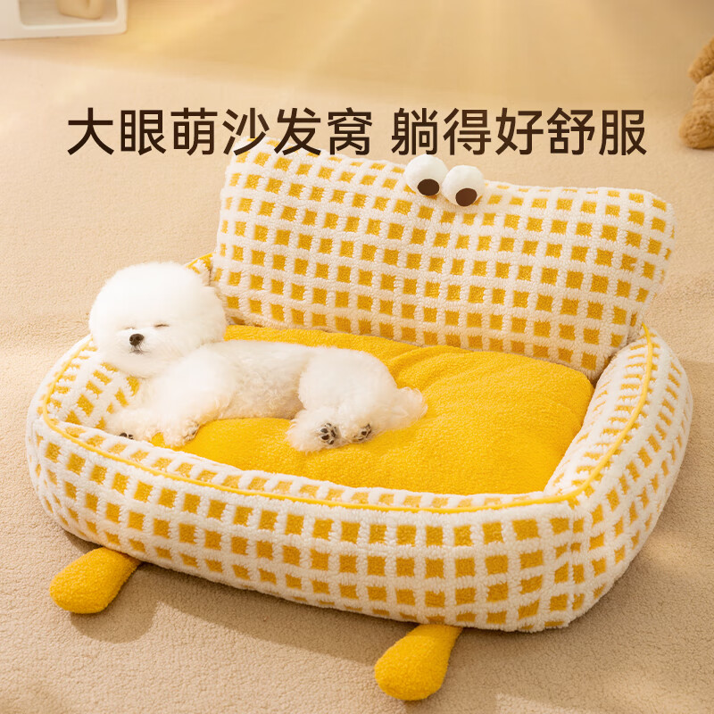 嬉皮狗(hipidog)狗窝四季通用可拆洗狗狗床宠物小型犬网红猫窝泰迪小狗沙发狗垫子 黄色 S(建议体重7斤内)