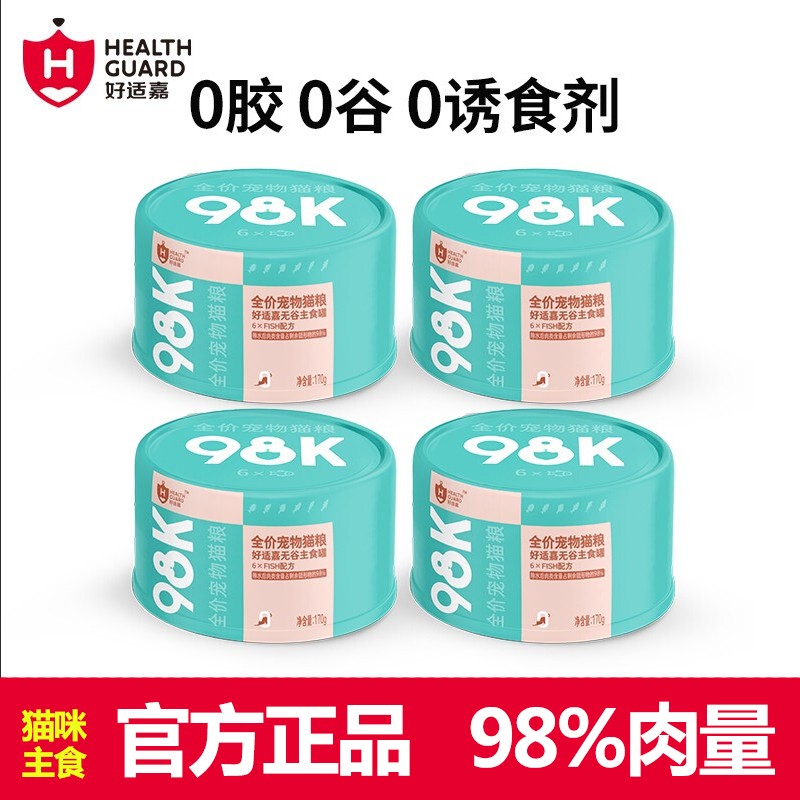 好适嘉猫罐头HG 98k湿粮罐头全期猫粮全价主食罐头无谷增肥营养成猫幼猫湿粮高肉 【大罐】六种鱼味170g*4罐