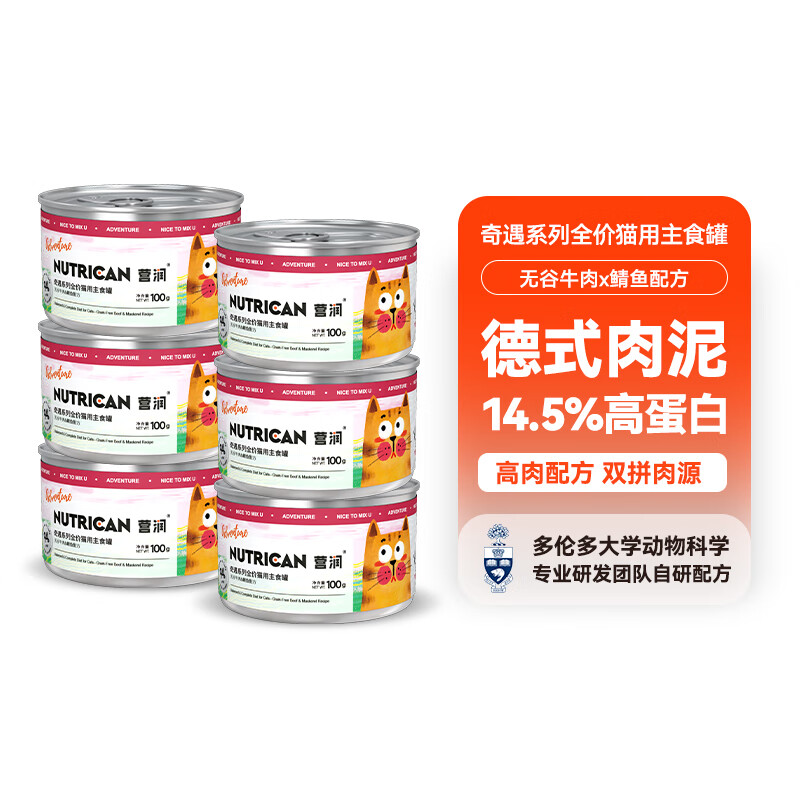 营润猫罐头 奇遇系列 全价成猫幼猫主食罐头 宠物猫咪零食湿粮100g 无谷牛肉