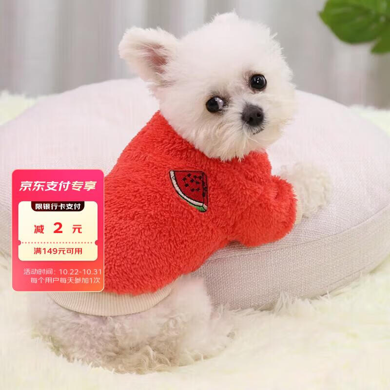 搭啵兔冬季加厚保暖狗狗猫咪衣服两脚中小型犬防掉毛厚款宠物衣服 大红小西瓜 S(建议2-4斤)