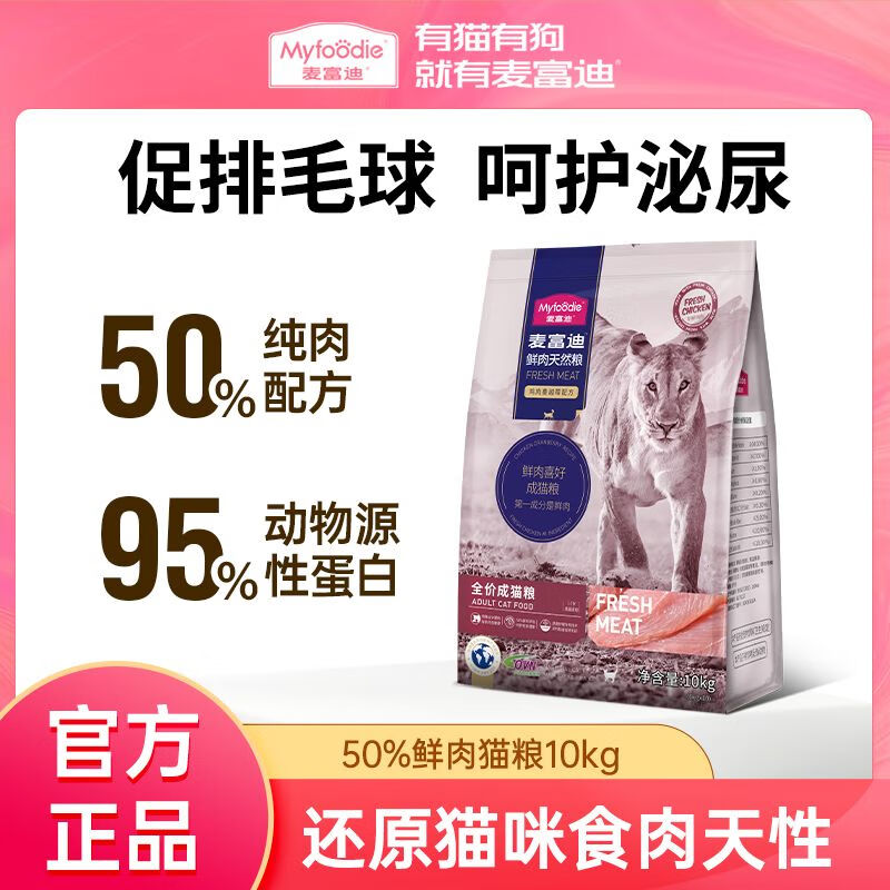 麦富迪50%鲜肉猫粮10kg成猫幼猫粮无谷低敏高蛋白全价全猫种通用 [50%鲜肉]-成猫粮 20斤