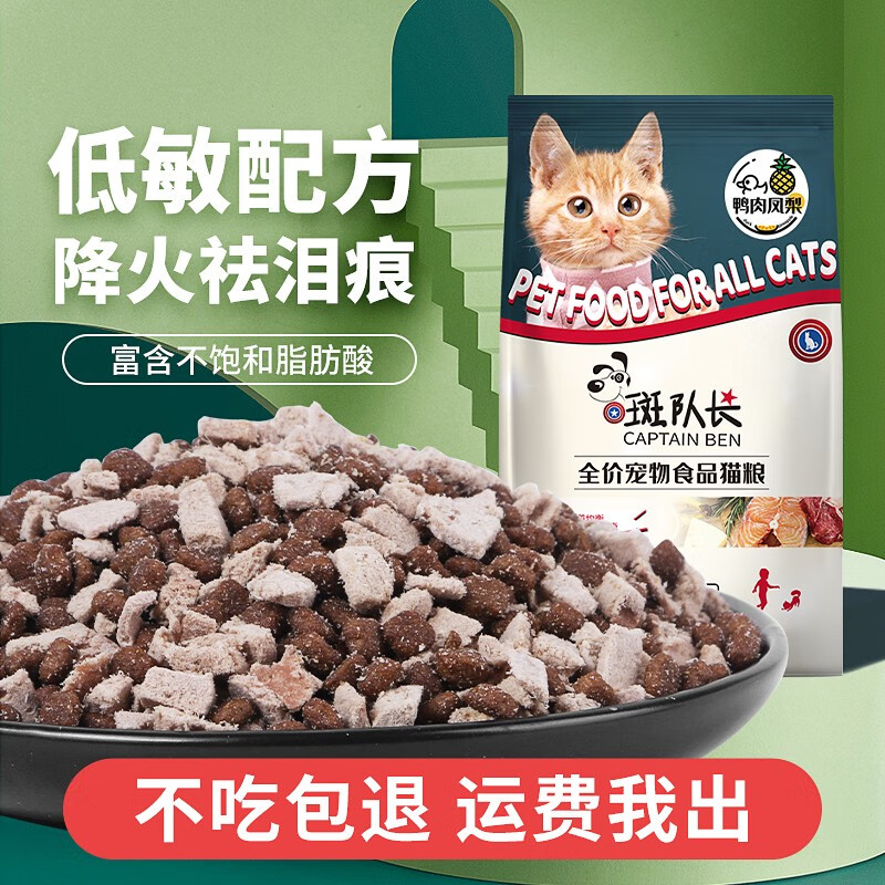 斑队长【冻干含量≥5%】幼猫成猫全阶段营养增肥发腮补钙鱼肉味冻干猫粮 鸭肉凤梨双拼-4斤装