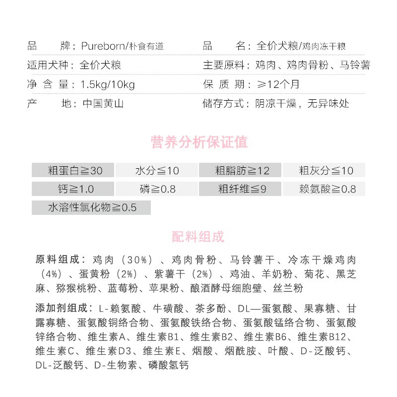 朴食有道鸡肉\/鸭肉梨泪痕配方冻干狗粮1.5kg装金毛泰迪博美全犬 冻干鸭肉 雪梨 蛋黄狗粮10kg