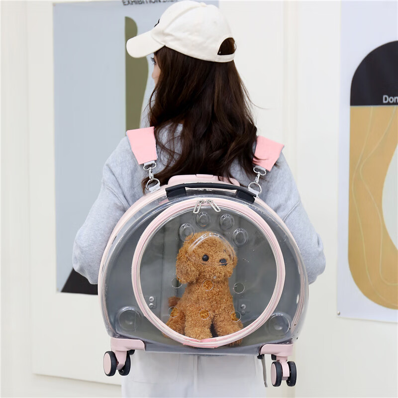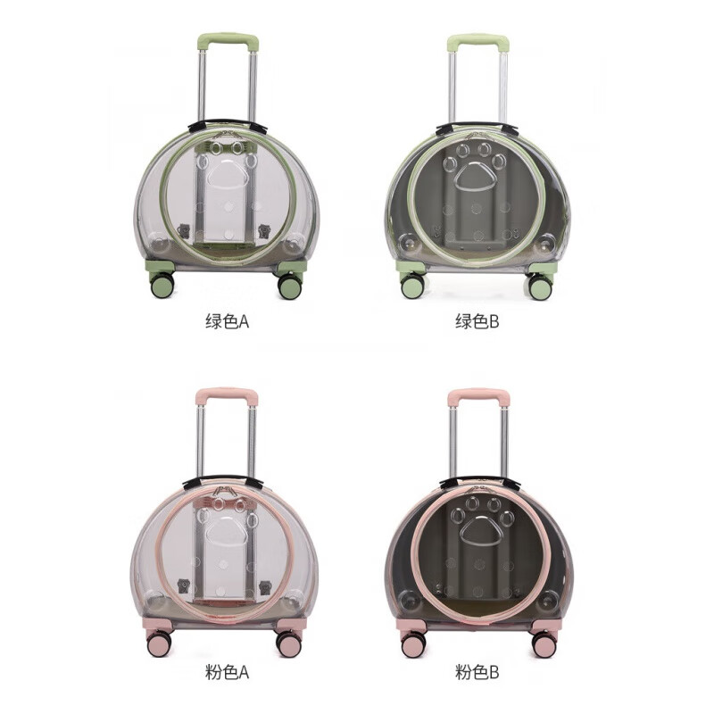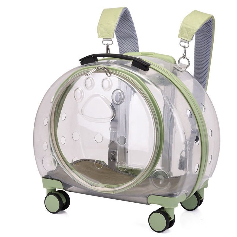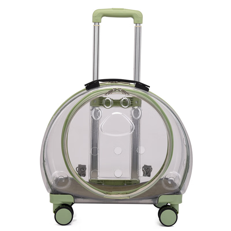 喀蔻猫包外出便携宠物拉杆箱透气太空舱透明大容量猫咪双肩背包狗推车 【透明款】绿色/18斤内猫