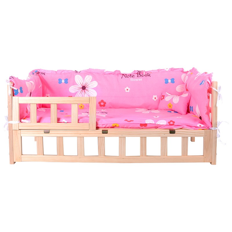 伊萨狗窝狗床离地泰迪狗窝金毛狗狗宠物实木床大中小型犬猫窝凉垫 豪华款粉色雏菊 M(75x50x39)
