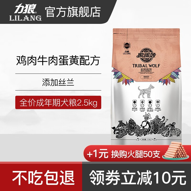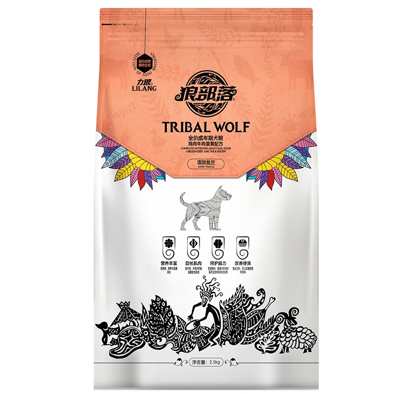 狼部落狗粮成犬2.5kg(5斤装)大中小型犬全犬成犬粮牛肉味通用型狗粮