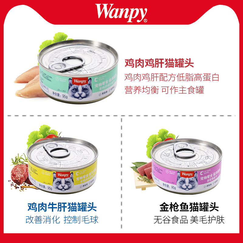 wanpy顽皮幼猫成猫金枪鱼牛肉慕斯鲜封肉包猫罐95g*10罐罐头湿粮