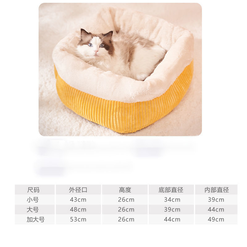 猫窝冬季保暖四季通用猫咪宠物垫子半封闭式小型狗窝猫垫猫床用品 柠檬黄 大号(15斤猫咪/8斤狗狗)