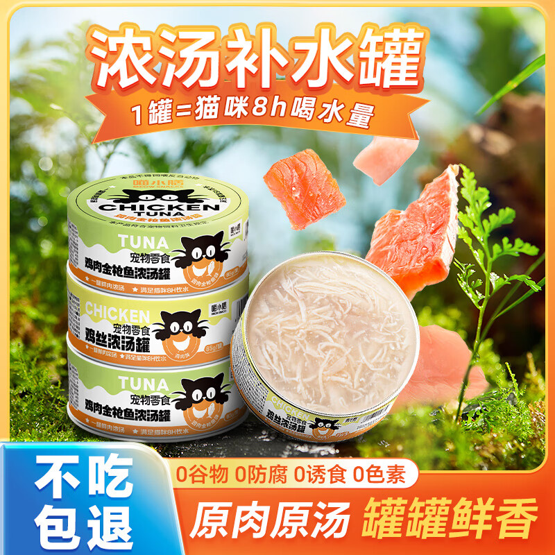 喵小膳猫咪补水罐头鸡肉金枪鱼成幼猫零食宠物营养猫咪牛磺酸维生素 鸡肉金枪鱼-85g 5个