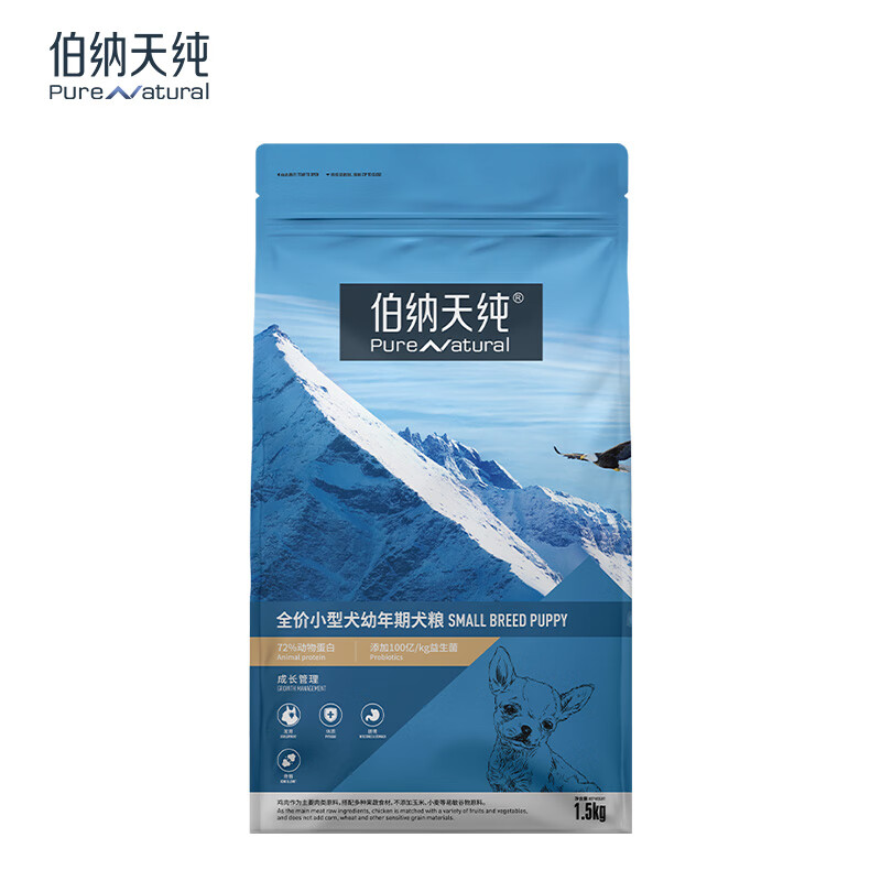 伯纳天纯狗粮小型犬幼犬专用粮比熊柯基法斗泰迪通用天然粮1.5kg 小型犬幼犬专用鸡肉鱼肉混合口味 1.5kg