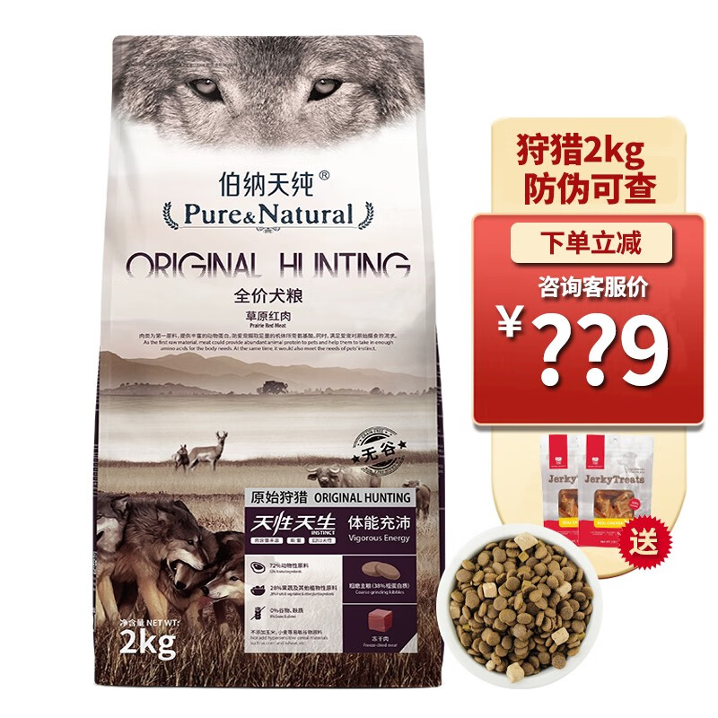 【询客服领卷】伯纳天纯 原始狩猎 4斤草原红肉犬粮冻干全期全价狗粮无谷物高肉高蛋白强健体质美毛 草原红肉(牛肉味)2kg