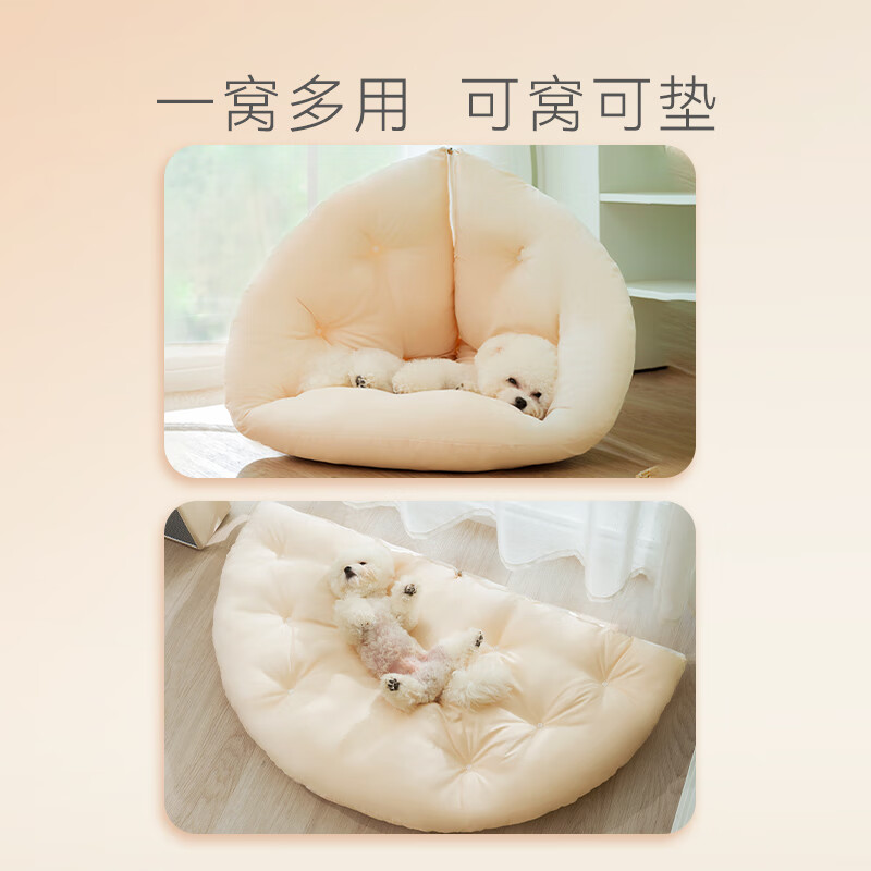 嬉皮狗(hipidog)狗窝四季通用小型犬比熊泰迪狗狗睡垫狗床可拆猫窝小沙发宠物用品 米白色(墙角窝沙发垫两用) M(建议体重10斤内)