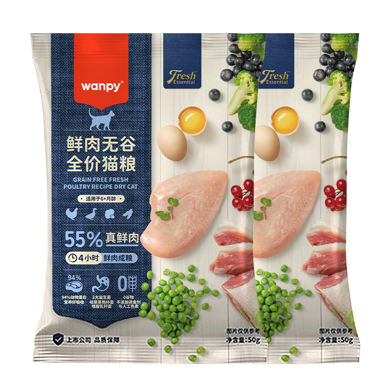 顽皮(wanpy)猫零食新人试吃礼包 55%鲜肉无谷全价猫粮50g*2