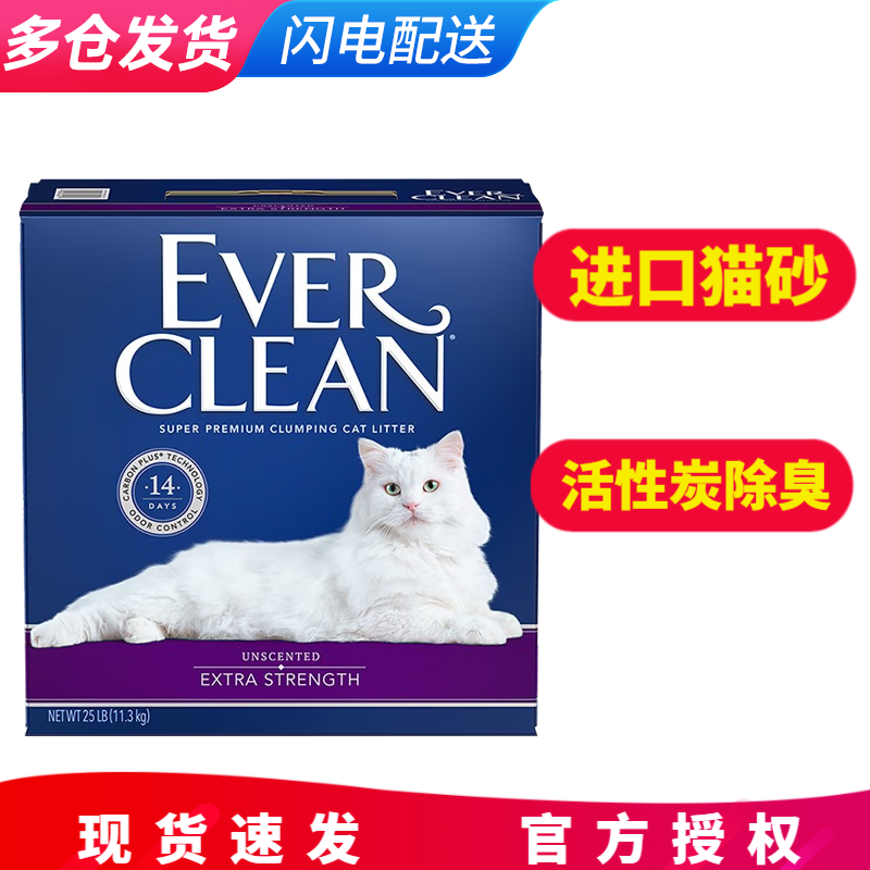 铂钻猫砂EverClean猫砂进口猫砂膨润土无尘活性炭除臭猫砂 [紫标] 极速结团猫砂25磅11.3kg