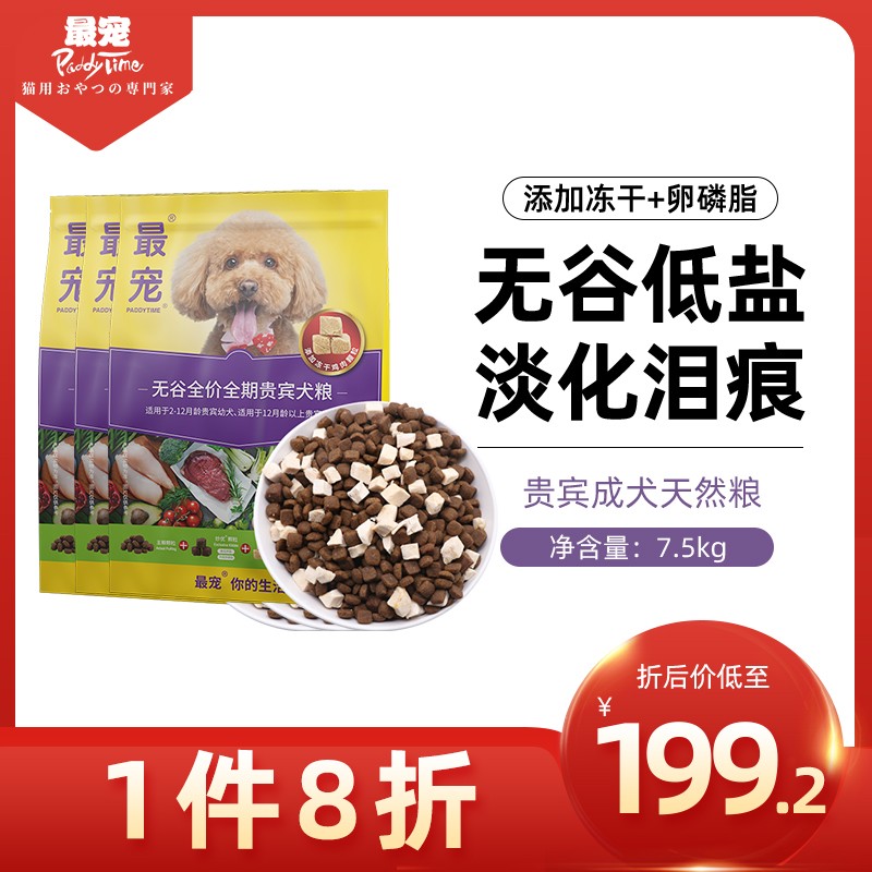 澳洲品牌 最宠(paddytime)全价全期贵宾犬粮1.5kg冻干粮三拼成犬幼犬通用全营养配方狗主粮 贵宾成犬天然粮7.5KG(7.12号左右到货发)