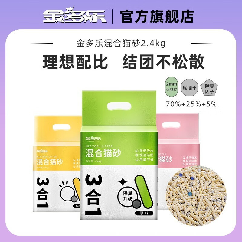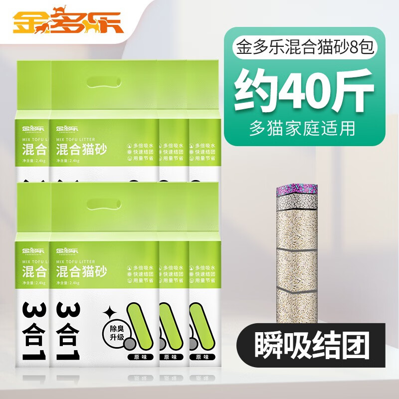 金多乐混合猫砂绿茶豆腐砂低尘活性炭矿石猫沙大袋10kg20斤装 原味混合猫砂2.4kg*8包