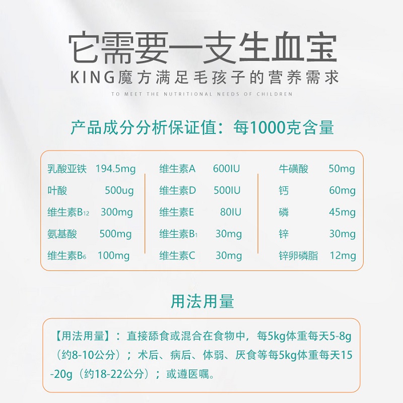 King魔方宠物营养膏猫狗狗猫咪产后手术后营养补充生血宝120g