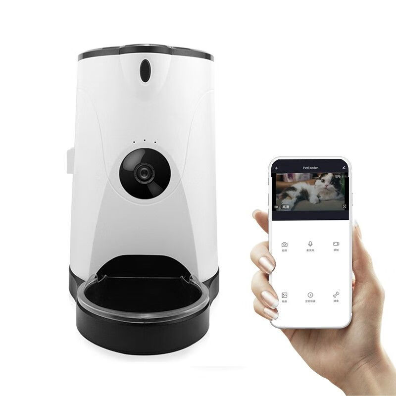 珊野宠物自动喂食器猫狗粮定时定量手机远程控制智能投喂器 6L白色 手机款