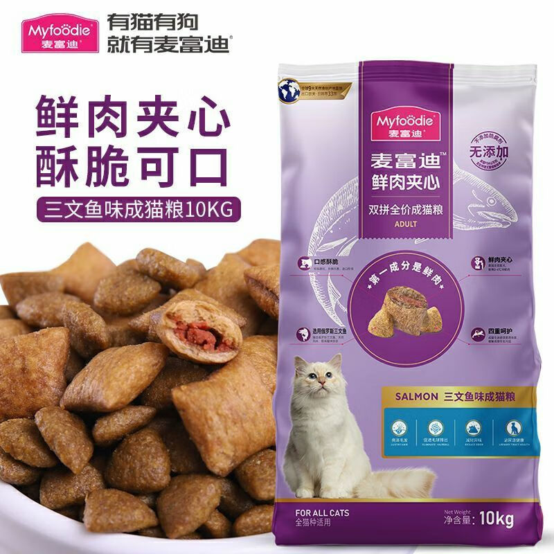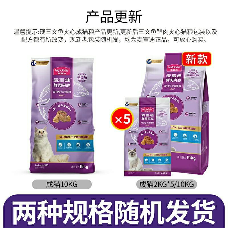 麦富迪猫粮双拼成猫幼猫三文鱼鲜肉夹心全价10KG英短布偶增肥发腮 三文鱼双拼夹心成猫新包装10kg