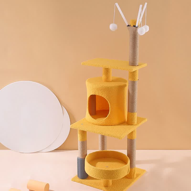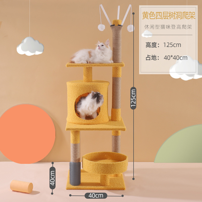 易萌 猫爬架 小型大型猫猫爬柱 猫架子 猫玩具 猫跳台 猫咪磨爪用品 黄色4层爬架