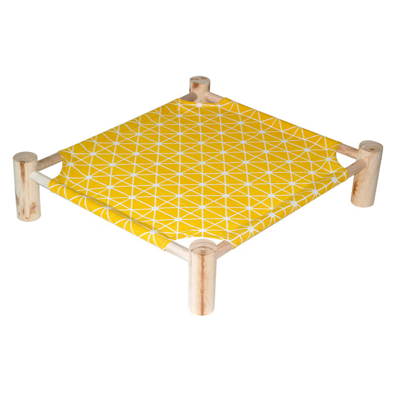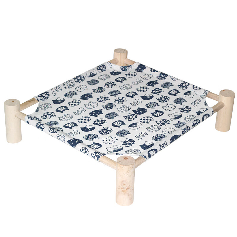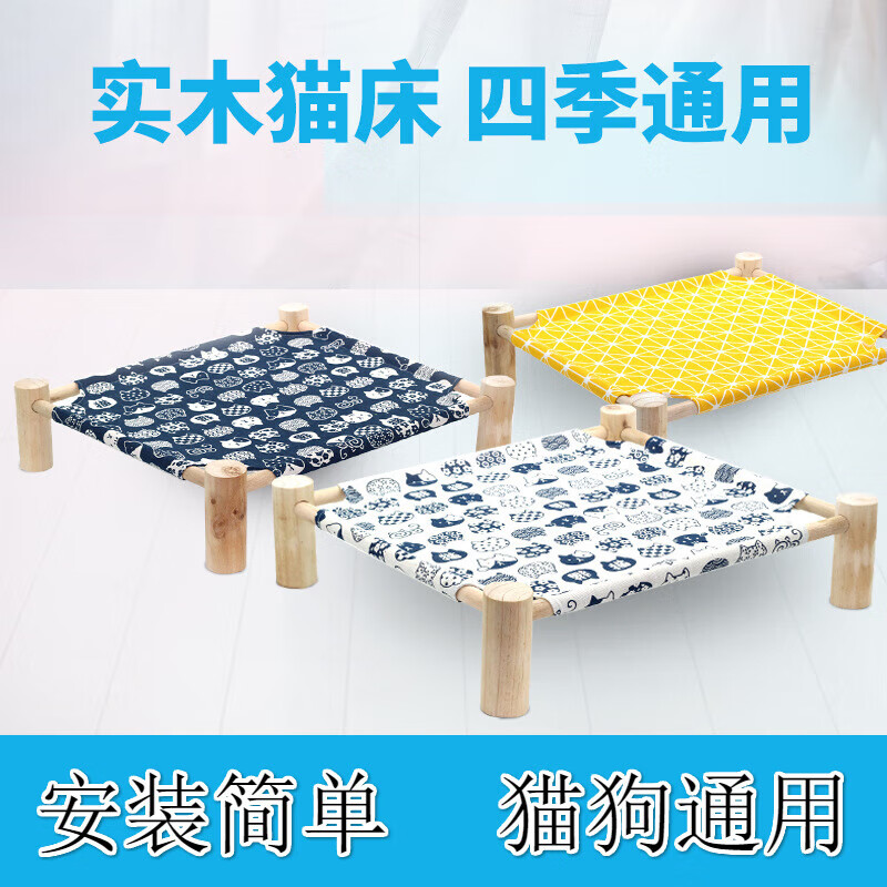 君哲宠具猫窝四季通用可拆洗猫床宠物木质行军床夏季猫吊床宠物床狗床狗窝 灰方格 木床 布