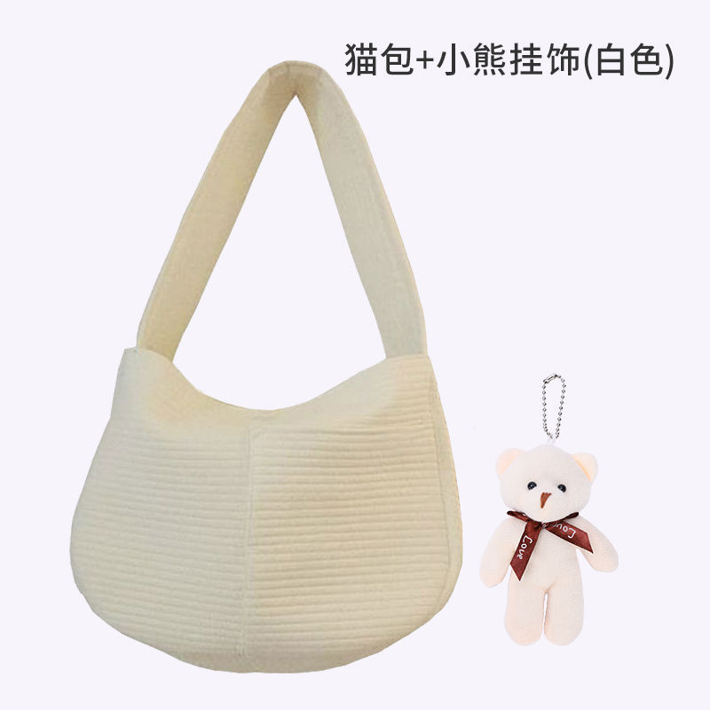猫包外出便携宠物猫咪狗狗背包斜挎装猫的小型犬帆布包包单肩猫袋 米白色猫包 白色小熊 大号(建议18斤内猫咪使用)