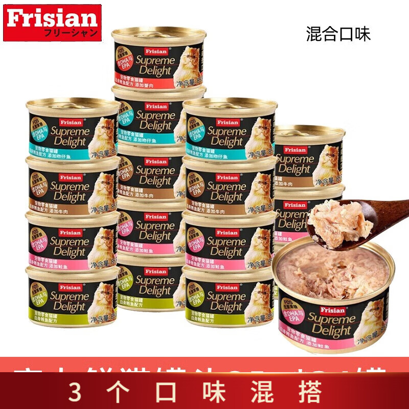富力鲜(Frisian)猫罐头 成猫幼猫零食猫湿粮富力鲜 泰国进口宠物猫粮猫咪鱼肉罐头 24罐组合装口味混搭