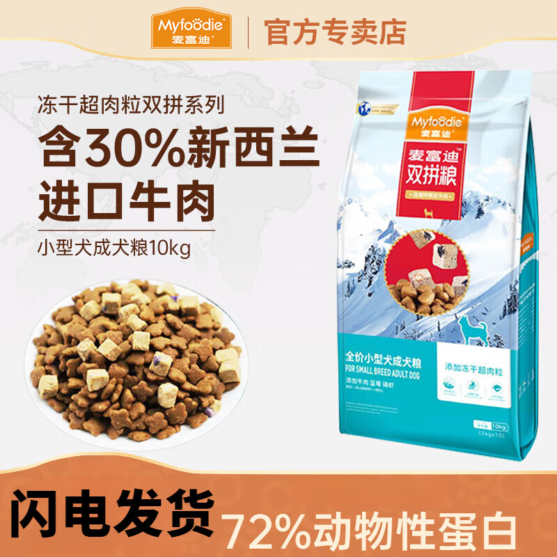 麦富迪狗粮小型成犬10kg牛肉冻干超肉粒双拼泰迪比熊通用型20斤装 冻干超肉粒小型犬成犬双拼粮 10k.g