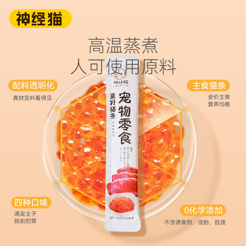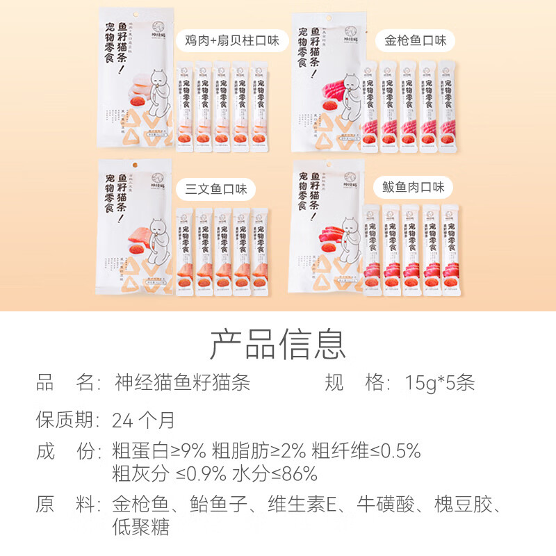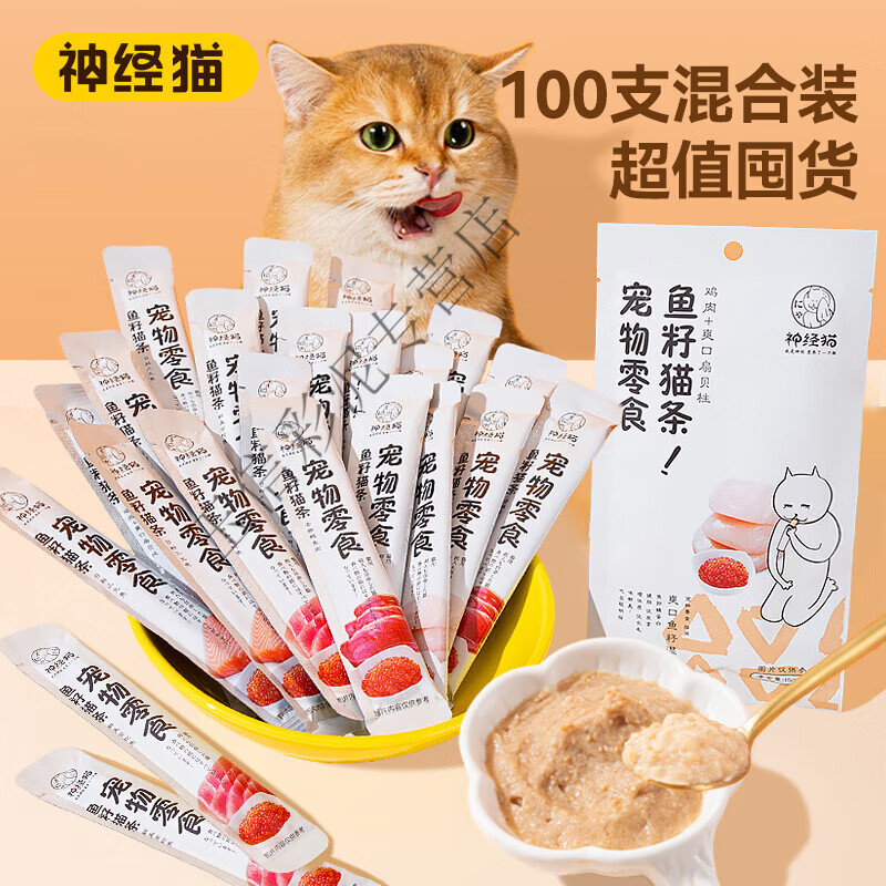神经猫猫条100支整箱猫咪零食营养增肥幼猫用品保湿湿粮猫罐头无诱食剂 [鲔鱼]鱼卵猫条100支~超值囤货 15g /支