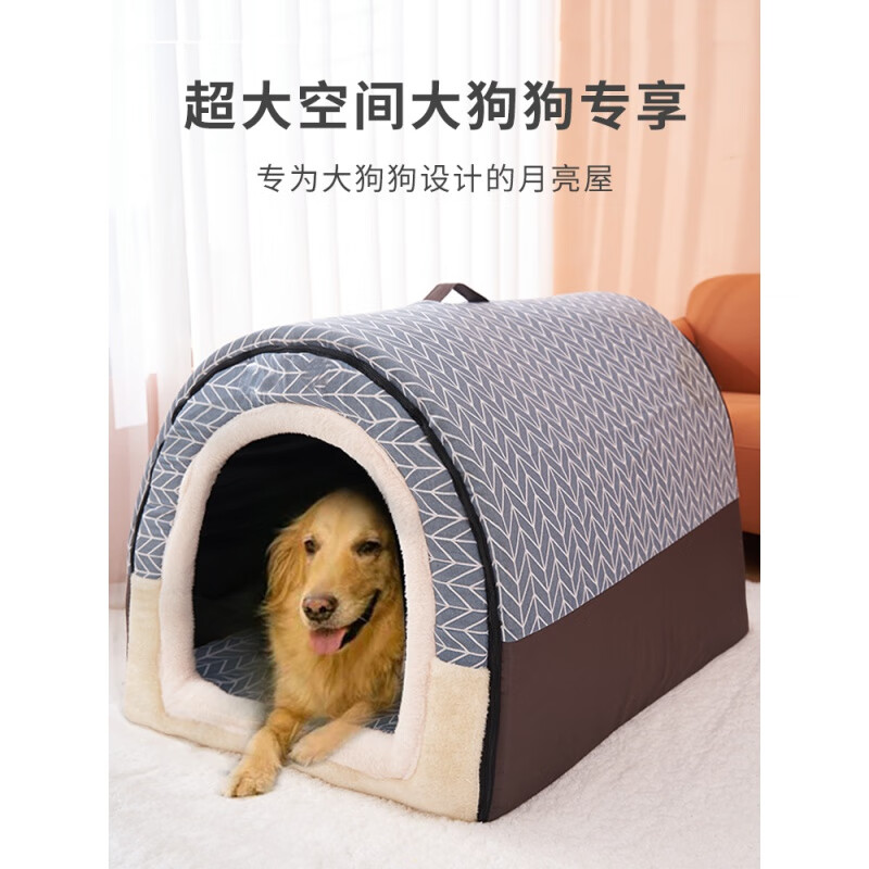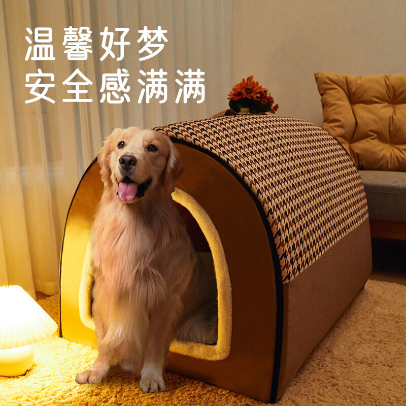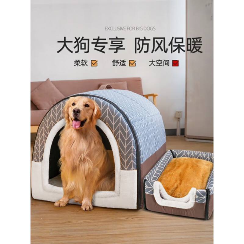 狗窝冬季保暖大型犬房子型宠物可拆洗沙发床四季通用金毛中型狗屋 【2022新款】千鸟格-蓝色 加厚垫子 加厚毛毯 XL【耐抓耐刨,建议40斤内】