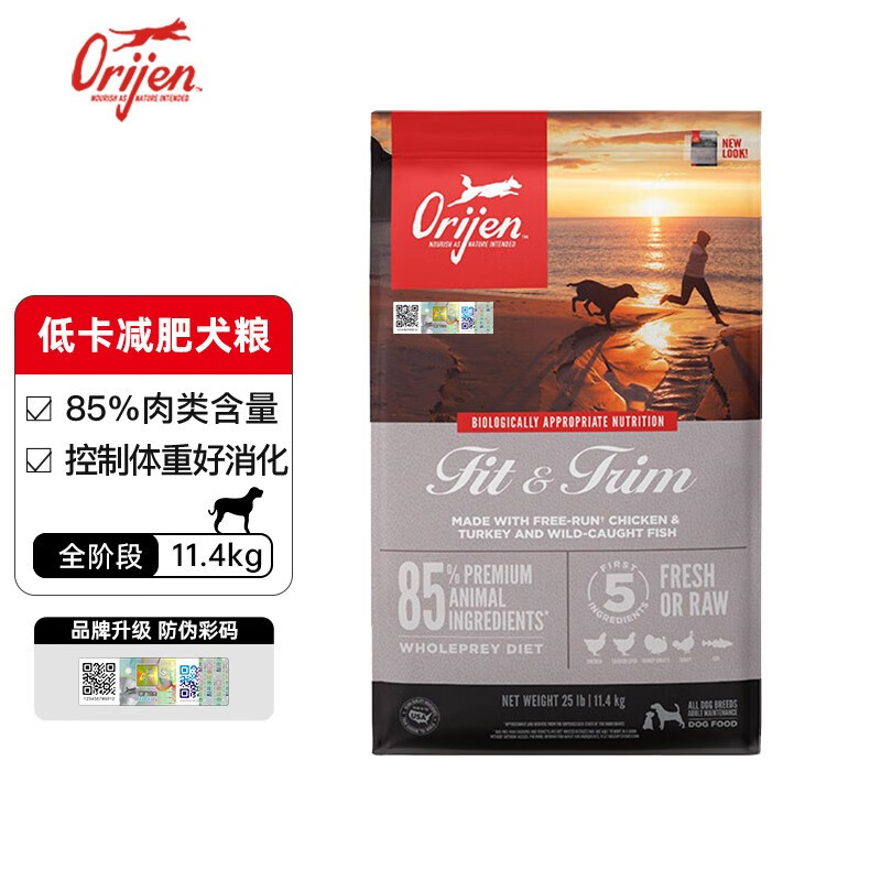 Orijen渴望原味鸡肉鱼肉犬粮无谷通用成犬幼全期无谷狗粮美毛亮肤柴犬 【美版】控制体重11.4kg