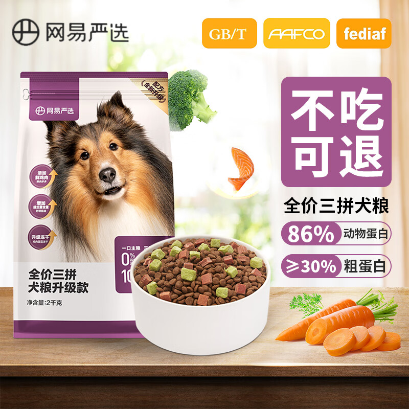 网易严选狗粮幼犬三拼冻干成犬小型犬大型犬狗干粮无谷老龄犬粮 6kg(2kg*3包)