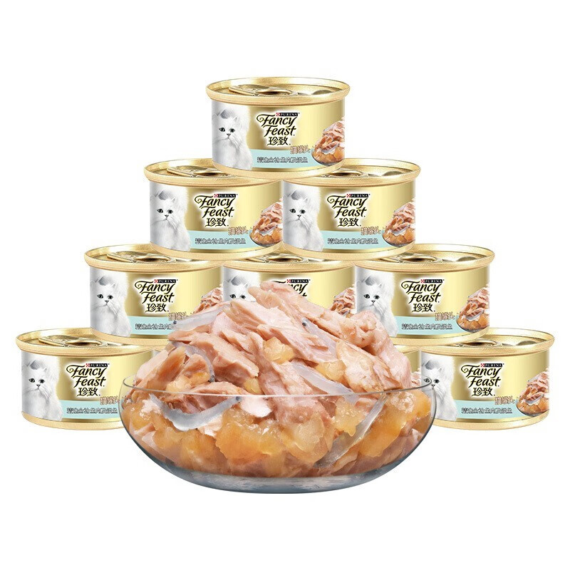 珍致猫罐头85g*24罐 泰国进口 宠物成猫幼猫 猫咪湿粮 白肉猫咪发腮增肥猫零食罐头 金枪鱼银鱼85g 12罐