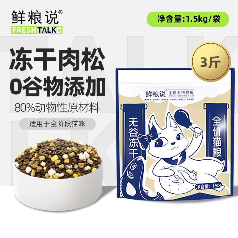 鲜粮说猫粮全价无谷冻干增肥发腮英短成幼猫全阶段通用型鲜肉猫粮 猫粮3斤