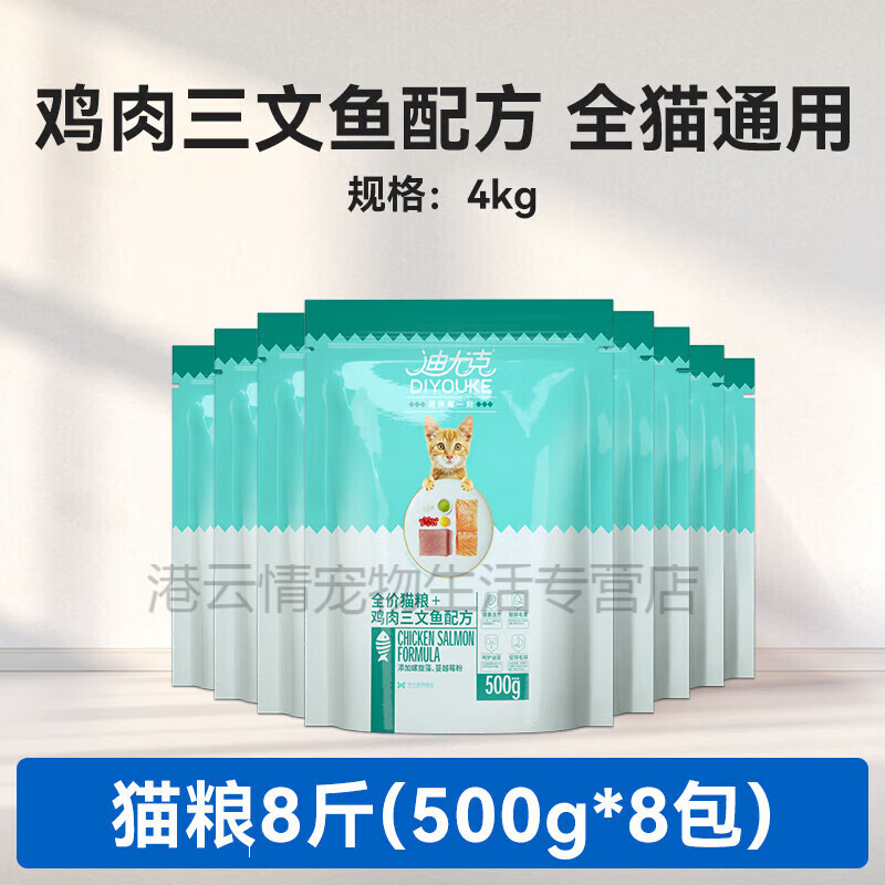 迪尤克猫粮全阶段全价通用4kg海洋鱼味8斤营养增肥发腮成猫幼猫粮 鸡肉三文鱼配方1斤装×8包 4kg