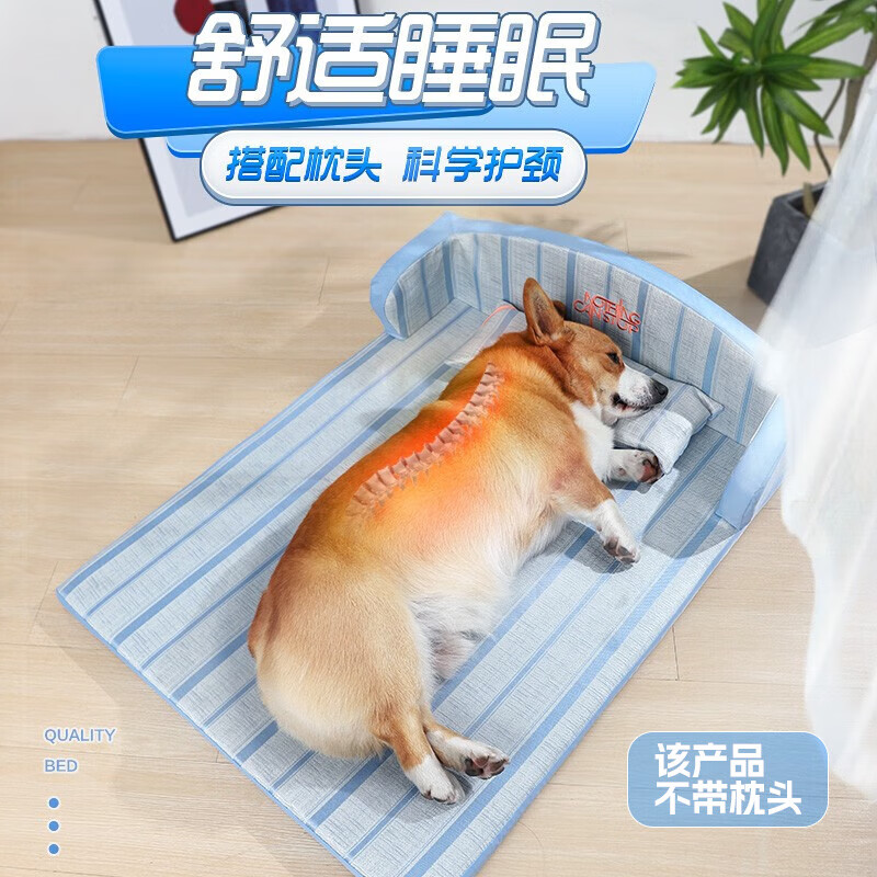 华元宠具(hoopet)狗狗冰垫冰窝夏天宠物凉席猫咪降温凉垫耐咬夏季狗垫子睡觉用睡垫 冰丝靠背床垫 天蓝 M中型-清凉降温 隔离潮气
