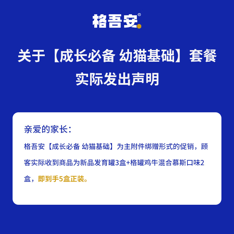 格吾安【 成长必备幼猫基础】全价主食猫罐头组合装(实发5盒-含附件)