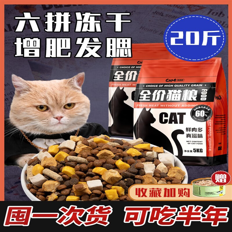 哆莫阳光(DUOMOYANGGYANG)猫粮20斤装冻干成猫幼猫全价猫粮10kg全阶段增肥发腮营养英短蓝猫 20斤装【高蛋白颗粒双拼】【量 10kg