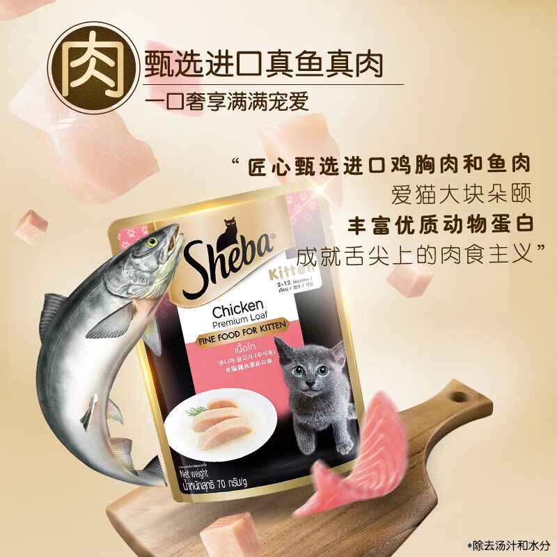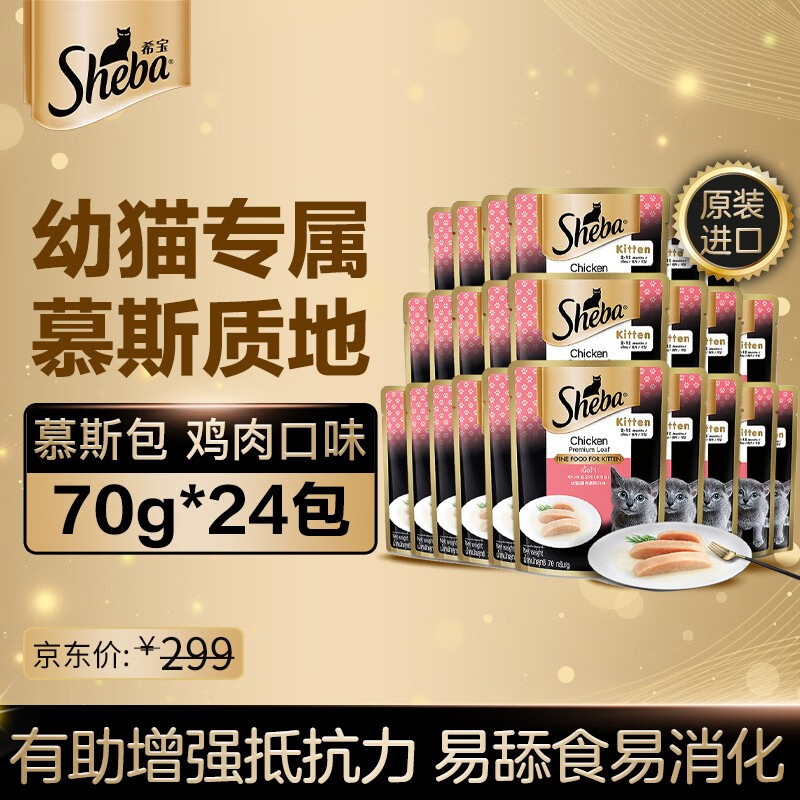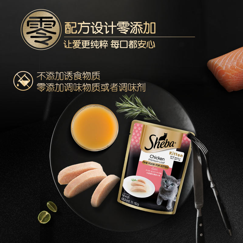 希宝(Sheba)猫零食猫湿粮慕斯妙鲜包 幼猫 鸡肉口味70g*24整盒装