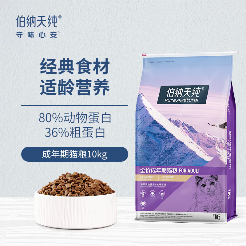 伯纳天纯 成猫粮低敏毛球泌尿系统 幼猫蓝猫金渐层英短美短通用博纳天纯 经典成猫10KG