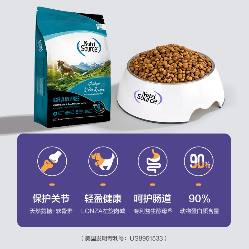 NUTRISOURCE新萃美国进口无谷大型犬粮成犬幼犬通用粮金毛拉布拉多鸡肉犬粮 【预售】11.4kg