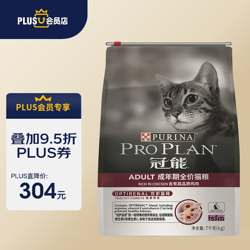 冠能京东PLUS会员联名款 猫粮成猫鸡肉味7kg 益肾配方 适口性强