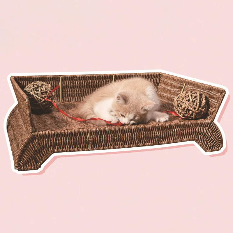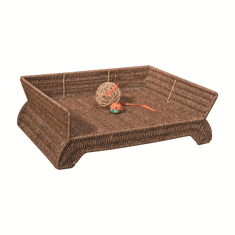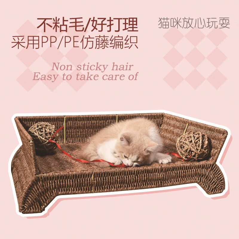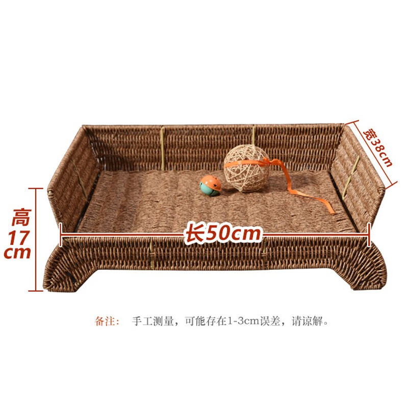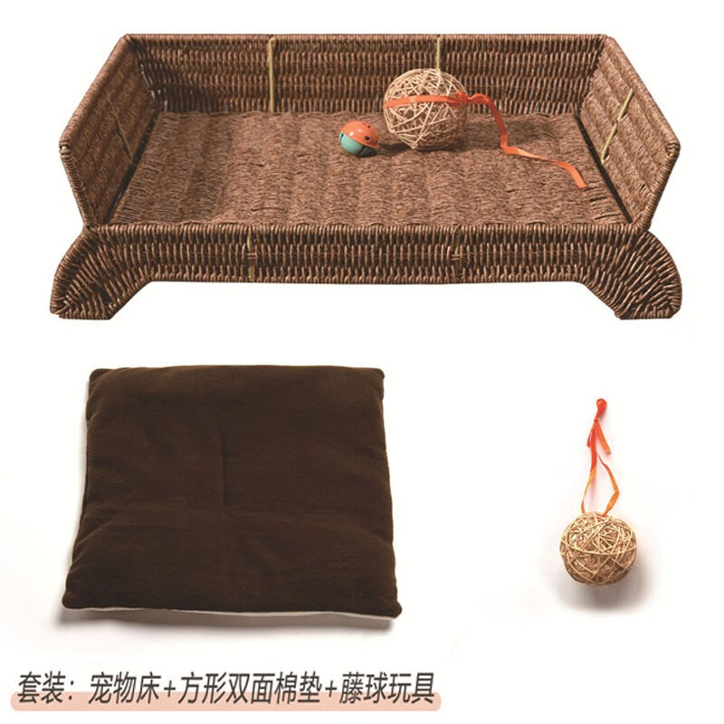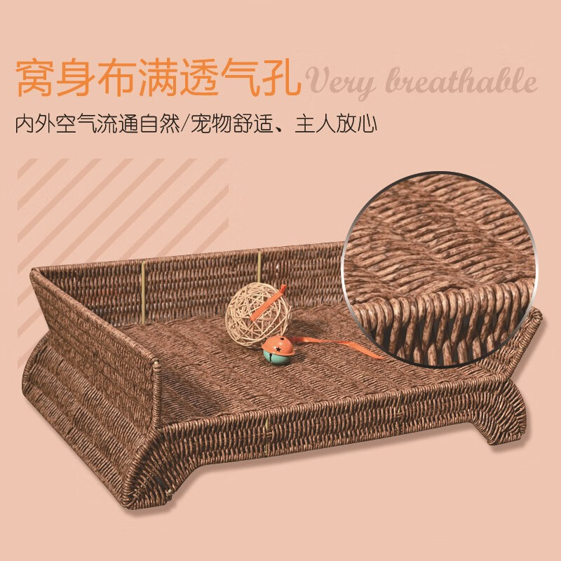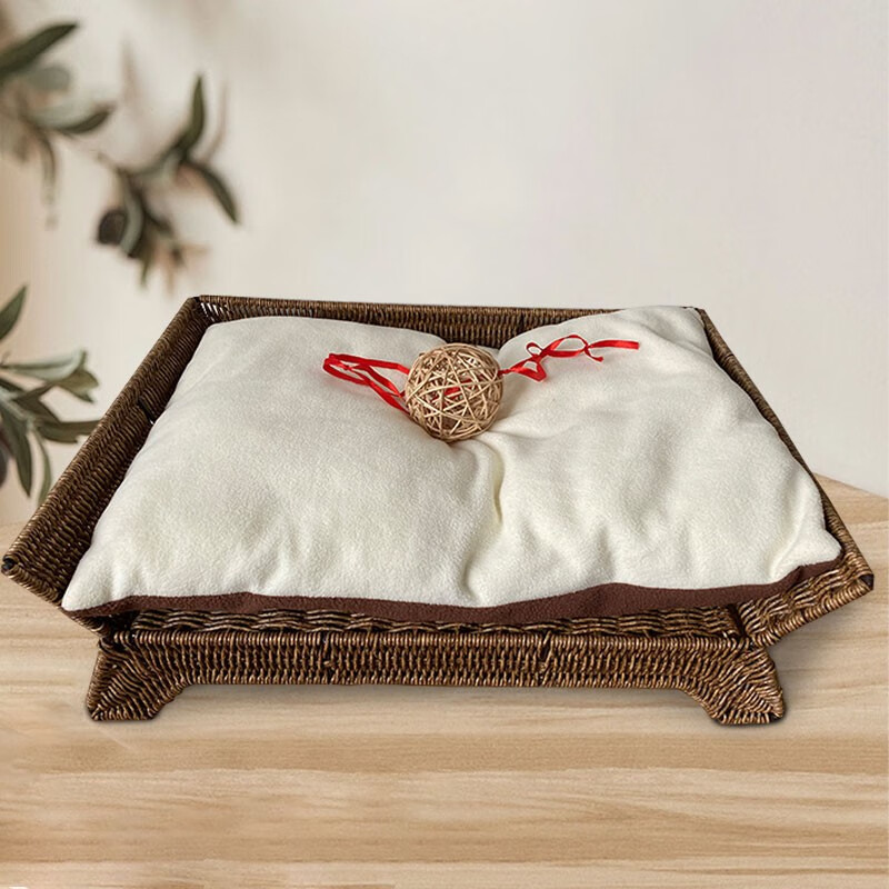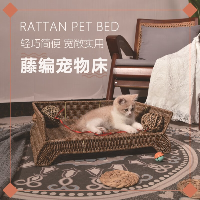 宝贝故事(BABY STORY) 藤编猫窝夏季 猫咪床耐用宠物床四季通用猫窝夏季凉窝狗床离地 宠物床 棉垫(带藤球玩具) 50*38*17cm
