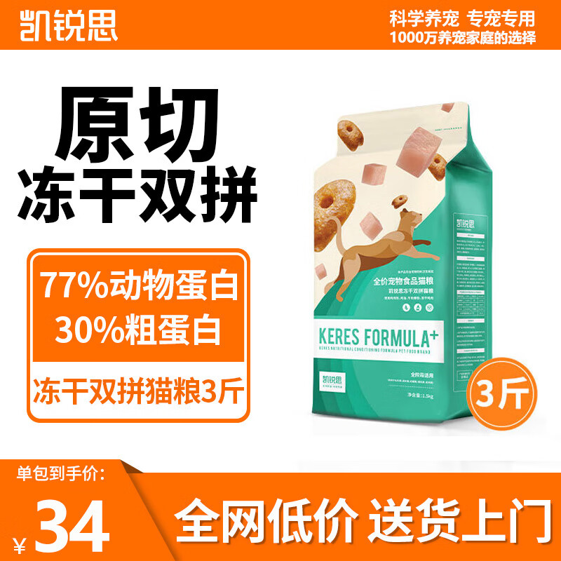 凯锐思冻干双拼猫粮幼猫成猫专用成年鱼肉深海鱼增肥发腮全价 【冻干双拼6斤】实发2袋
