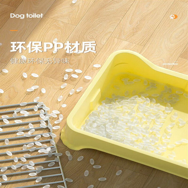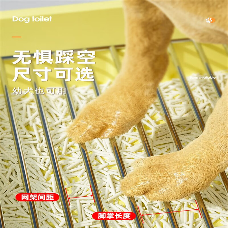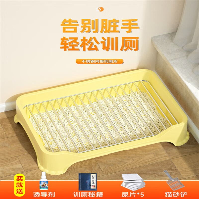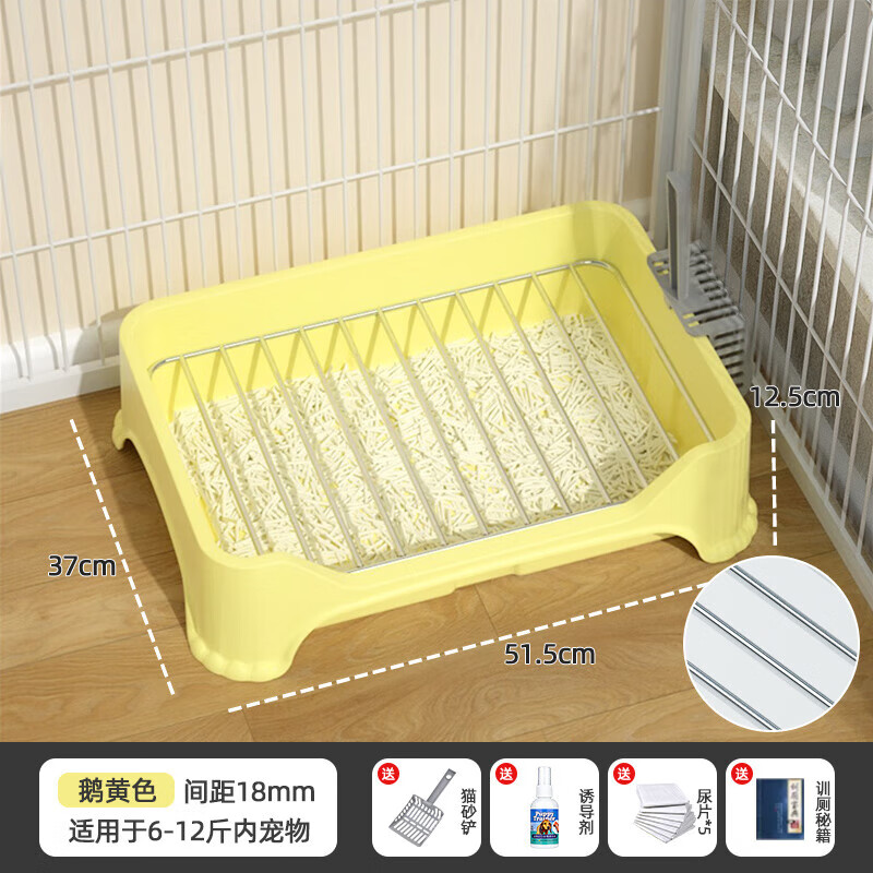 蒂乐森狗狗厕所小型犬比熊泰迪专用不锈钢防踩屎狗砂盆小狗大小便神器盆 鹅黄色18mm孔距【6-12斤可用】