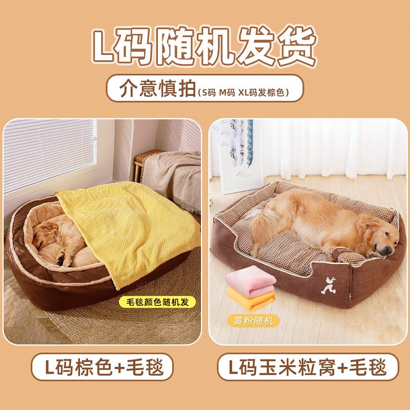 hoopet 狗窝保暖可拆洗柯基睡觉用大型犬冬天狗床金毛四季通用狗垫子 【棕色 毛毯】狗窝保暖深睡窝 XL:120*90*23(建议体重100斤)